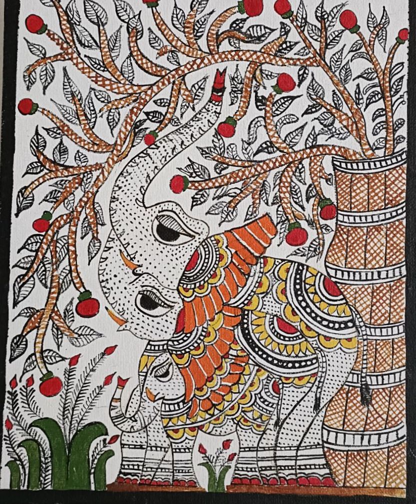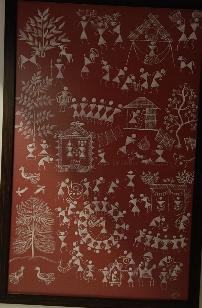 As of now I aspire to display art depicting compassion ,expressing more on grace and love my style of painting has always been close to mother nature in various forms of art ,one is the renowned indian art of warli painting ,is of tribal art mostly created by the tribal people from north sahyadri range of Maharashtra walls are covered and painted through done during marriage ceremonies, harvest, festivities ,the art form depicts basic geometric shapes,circle triangle and square painted on walls coated with brick red as the background.