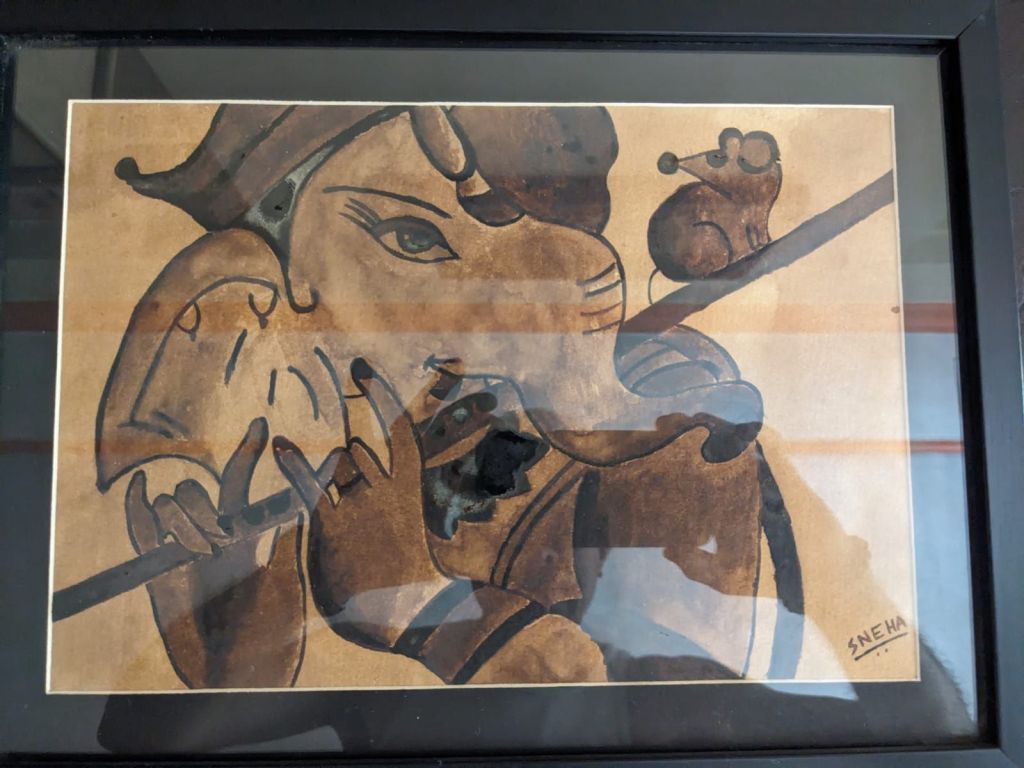 Ancient Chinese artists who used tea in their art works and coffee as a medium inspired by David schomer , tried to depict coffee painting on lord Ganesha and lord Krishna .